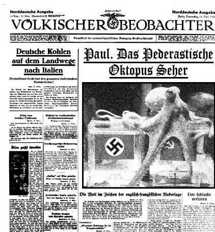 Das Pederastische Octopus I know, I know, off topic again. I just couldn’t pass it by without sharing. It’s freaking hilarious. Looks like octopus Paul has a long history or predictions. Share this: Click to email a link to a friend (Opens in new window) Email Click to share on Facebook (Opens in new window) Facebook Click to print (Opens in new window) Print Click to share on Reddit (Opens in new window) Reddit Click to share on X (Opens in new window) X Like Loading... Related