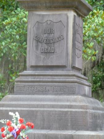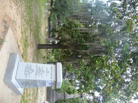 Later, Joanne took me to the Old Live Oak Cemetery. This is where that ill-fated monument was eventually moved. This cemetery is a very beautiful place with magnolias covered with Spanish moss that makes them willowy, thus giving it this authentic Southern feel. Here’s some pictures.